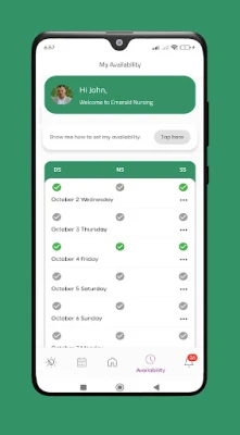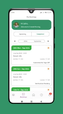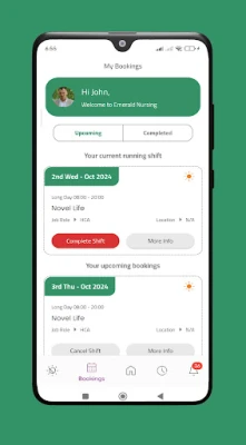 Emerald Nursing App is an easy-to-use app designed to simplify shift management for our healthcare professionals. Nurses, Health Care Assistants, Support Staff, and other healthcare workers can effortlessly book shifts, submit timesheets, set availability and manage their work related interactions through the app. Whether you're on the go or at a facility, Emerald Nursing helps you stay organised, efficient, and compliant.
